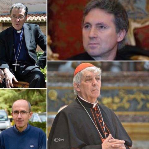 La terna di possibili sostituti per Menichelli: dall’alto a destra, don Marco Presciutti, monsignor Pietro Santoro, in basso a sinistra don Francesco Pierpaoli