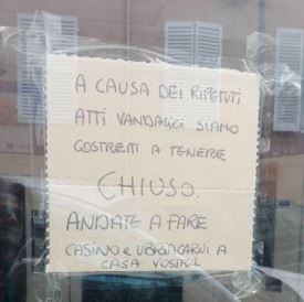 Il cartello della titolare, messo dopo l’ultimo atto vandalico