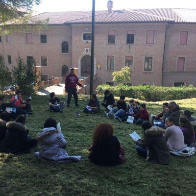 In attesa di inaugurare gli spazi individuati per le attività con tutti i soggetti coinvolti, le classi della Scuola Secondaria di primo grado “G. Leopardi” Osimo ( Borgo) stanno iniziando a godere dei meravigliosi prati, alberi, profili, colori con attività di lettura all’aperto e passeggiate didattiche alla scoperta di piante, foglie, proprietà chimiche del terreno.