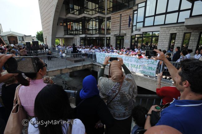 “Gli uomini passano, le idee restano”. Uno striscione preparato dagli studenti e affisso su una ringhiera ha dato inizio, questa mattina, in piazza Salvo D’Acquisto, alla festa finale delle scuole sul tema della legalità nel ricordo del magistrato Giovanni Falcone. Proprio oggi ricorre infatti il 25ensimo anniversario dalla sua morte, la strage di Capaci. Un uomo della giustizia che ha lasciato il segno nella storia italiana, pagando sulla sua pelle quel bisogno di verità e lealtà che ancora oggi sembrano mancare. Ma gli studenti hanno voluto avvicinarsi ai valori per i quali il magistrato verrà ricordato per sempre. La scuola elementare Falcone, dell’istituto comprensivo Quartieri Nuovi , si è impegnata tutto l’anno per un progetto sulla legalità e dedicato proprio al magistrato ucciso. “Sulle orme dei grandi maestri: Giovanni Falcone”, questo il tema scelto che ha visto la partecipazione anche della scuola elementare Rodari e della scuola media Michelangelo Buonarroti. Durante l’anno gli studenti si sono impegnati in un percorso per promuovere il rispetto delle regole, capire il significato di mafia e nuove mafie e ancora che cos’è la giustizia e la legalità. La cerimonia si è aperta scoprendo la targa commemorativa del giudice Falcone, installata nella colonna laterale della scuola, presenti gli assessori comunali Tiziana Borini, Stefano Foresi, il consigliere Massimo Mandarano e il dirigente scolastico Giulio Ottaviani. Il momento intenso è stato sottolineato dal coro della polizia di Ancona, che ha intonato l’inno di Mameli. Dopo un intervento della classe quinta, tutti gli alunni della scuola hanno cantato alcuni brani significativi, legati alla necessità di riflettere intorno alla vita, alla società, ai progetti e all’uomo, come “Pensa”, di Fabrizio Moro, “Vietato morire” di Ermal Meta, “Se bastasse una canzone” di Ramazzotti e “Il tuo figlio” di Collins. Gli agenti dell’unità cinofila della polizia hanno quindi presentato un’esibizione in piazza, mostrando le tecniche di intervento dei cani addestrati. A salutare la conclusione della cerimonia, la liberazione di una nuvola di palloncini bianchi, a cui sono stati appesi pensieri riguardanti la legalità: un segno forte, un augurio che si possa “volare in alto”, realizzando progetti elevati e concreti. Nell’atrio della scuola è stata inaugurata la doppia mostra, una sulla figura di Giovanni Falcone, l’altra sulle grotte di Frasassi, a cui hanno lavorato alunni e docenti durante l’anno, con il taglio del nastro del preside Ottaviani.