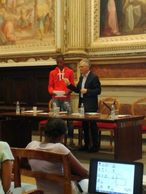 “Siate orgogliosi di ciò che state facendo – ha detto il sindaco – questo Istituto con la sua formazione vi dà ampie prospettive, vi aiuta ad organizzare il tempo, a comprendere le difficoltà e dove possibile a superarle. Tutto questo, per chi è fuori da vostro contesto, molto spesso viene sottovalutato ma invece siatene sempre fieri”. Il preside dell’Istituto Giancarlo Marcelli ha messo l’accento sull’importanza di “portare fuori dall’Istituto l’iniziativa” e davanti ad una platea giovane e davvero variopinta ha premiato con una menzione speciale Hamidu Seidu un ragazzo che “è venuto da lontano, ha imparato l’italiano in tempo record e ha messo vera passione negli studi”. I premiati sono stati: Giacomo Agostinelli, Matteo Scorta, Samuele Orici, Lorenzo Cicconi, Fiorina Riccio, Matteo Jasar, Diljot Singh, Alessio Cattarulla, Simone Guglielmi, Andrea tarsi, Giulia Cneci, Senada Nesimi, Elvis Vezi, Josue Arana santana, Giordano Spinaci, Angelo Carmine Maglio, Geremy Calisti, Valerio Conti, Marco Miramonti, Andrea Bartocci, Michele Kaculi, Christina Cingolani, Valerio Donnini, Simone Agostinelli, Arianna Lenci.