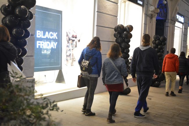 Tutti pazzi per il Black Friday. La chiamata alle armi per gli appassionati dello shopping è scattata ufficialmente stamattina, ma alcuni commercianti hanno iniziato a fare sconti già ad inizio settimana e in molti estenderanno i saldi fino a domenica. Una Black week quindi, che ha coinvolto praticamente ogni settore, e che dà il calcio d’inizio alle compere natalizie, con tanti clienti a caccia del regalo perfetto. Un’iniziativa made in the Usa che ha definitivamente attecchito anche nel commercio dorico: appeso ad ogni vetrina del centro, un cartellone che annuncia trionfalmente tagli sul prezzo, fino al 50% su articoli selezionati e quasi ovunque ribassi del 20 e 30%.