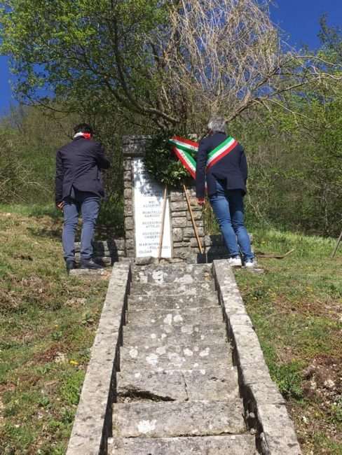 Il sindaco di Genga, Marco Filipponi, depone la corona di alloro ai monumenti commemorativi di Genga capoluogo e Camponocecchio. Presente il presidente Provinciale Anpi, Daniele Fancello.