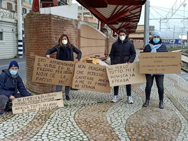 La prostesa #Covidinstrada alla Stazione Marittima di Ancona, altro luogo di ritrovo per senza tetto