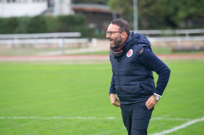 Ciampelli, mentre festeggia la promozione del Porto d’Ascoli (Foto Facebook dalla pagina Eccellenza Calcio Umbria)