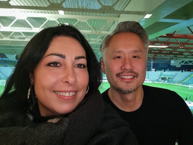 Un abbraccio con la direttrice e un sorriso: Tony Tiong sbarca al Del Conero