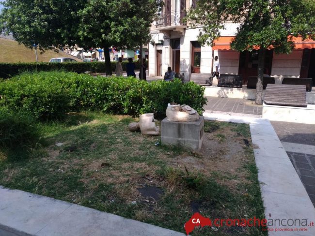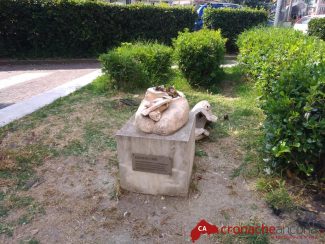 Questa mattina, i ‘cocci’ erano sparsi nell’aiuola, con vicino tappi di birra e pezzi rotti di bottiglie. Difficile sarà scoprire gli autori, così come impuniti rimasero quelli che agirono nell’ottobre del 2018 quando il busto venne anche allora danneggiato e decapitato, ma dalle vicine telecamere non venne ripreso nulla. La statua fu poi restaurata e ricollocata al suo posto.