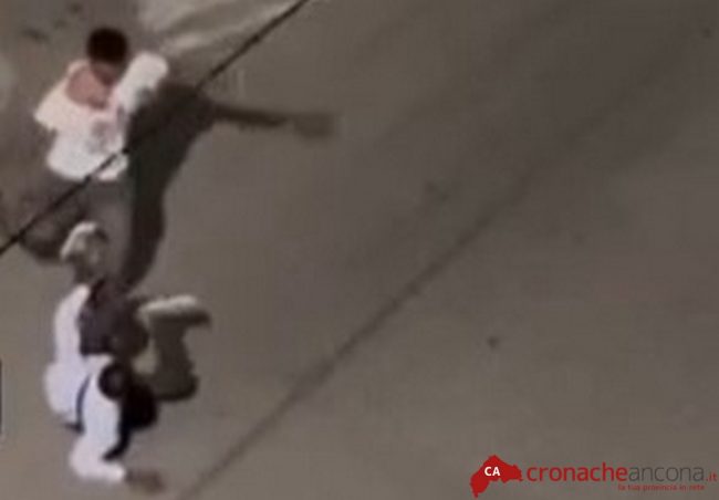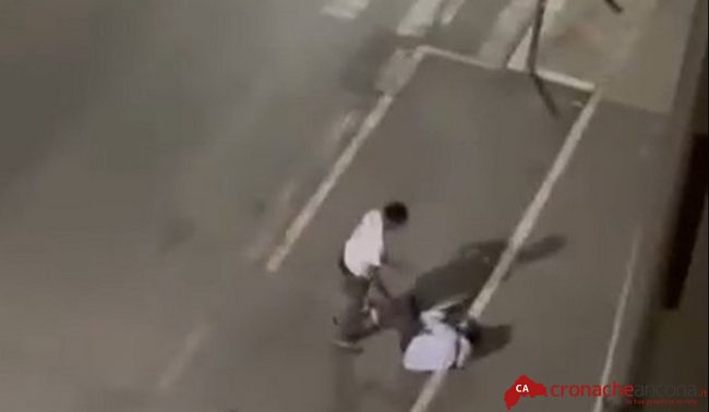 Uno crolla infatti a terra e viene preso a calci e a pugni nonostante non abbia modo di difendersi ma cerca comunque di parare i colpi. Poi riesce ad alzarsi, ed ecco altri pugni e di nuovo la caduta a terra, questa volta in mezzo alla via.