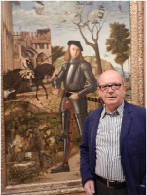 L’ex direttore della Pinacoteca civica di Ancona, Michele Polverari davanti al Giovane cavaliere di Carpaccio (Madrid, Museo Thyssen-Bornemisza)
