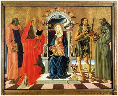 Nicola di Maestro Antonio (Ancona, seconda metà sec. XV-inizi sec. XVI) , Tavola centrale di un polittico già ad Ancona in San Francesco delle Scale, firmato e datato 1472; Pittsburg, Carnegie Museum