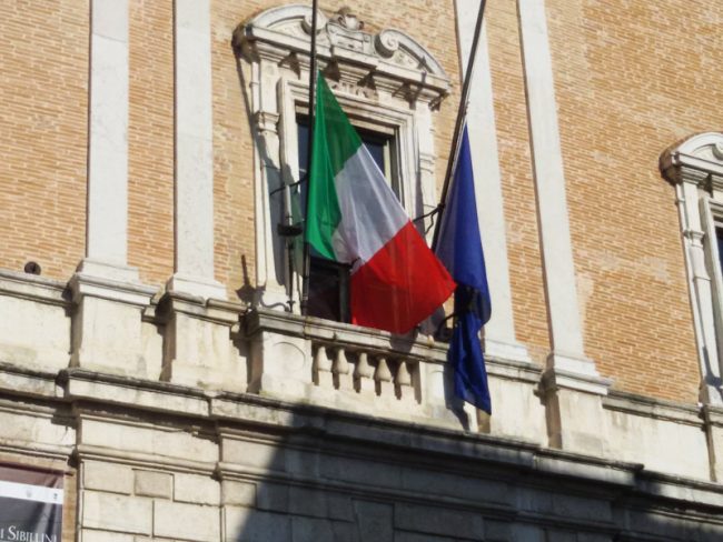Osimo, palazzo comunale con le bandiere a mezz’asta