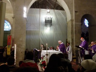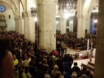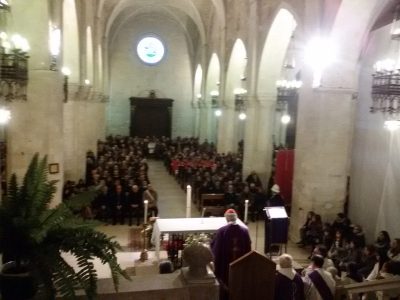 “Faccio fatica a raccontarla perché è una storia che mi fa essere sangue. – ha esordito l’arcivescovo di Ancona-Osimo –  Era la notte di fine anno a cavallo tra il 1950 ed il 1951 e su un lettino di ospedale, quelli  di una volta dove si moriva in compagnia, si è spenta mia madre, 28 anni, dopo aver dato alla luce la terza figlia. Restiamo nel dolore, con papà 35 anni uomo innamorato folle della sua sposa, io di 11, una sorella di 4 e una di 6 giorni. L’amore perso schianta il cuore di mio padre come una slavina interiore. E lui è morto a distanza di qualche mese. Così per Samuel-Edoardo nasce un’altra storia, fatta di momenti di solitudine, lavoro e solidarietà, con la forte sensazione che Dio era il mio nemico. La domanda era sempre la stessa: perché? Ma non c’era risposta. Poi è apparsa una traccia, che io invoco per voi: qual è il tempo per morire? La risposta non spetta a noi e qui sta il mistero di Dio di fronte al quale io mi sono dovuto inginocchiare, poi guardate cosa mi è successo. Solo Lui sa”.