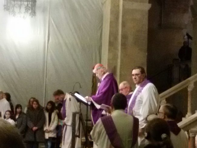 Il cardinale e arcivescovo di Ancona-Osimo, Edoardo Menichelli mentre celebra la messa