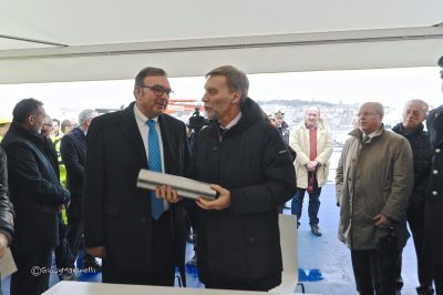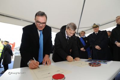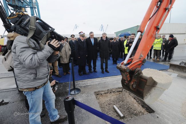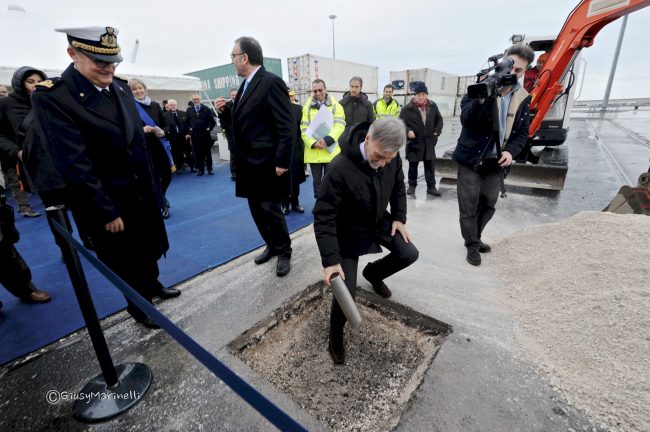 La posa della prima pietra per i lavori di consolidamento della banchina 22