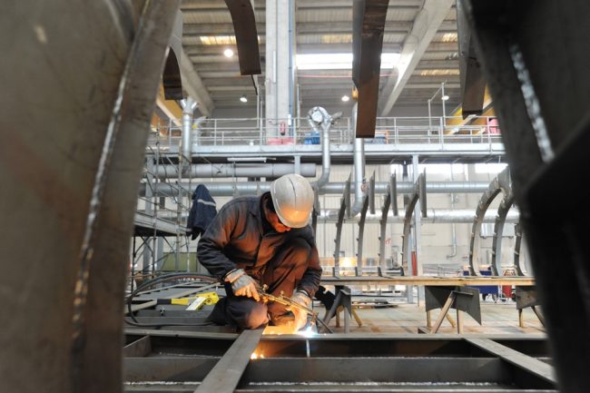 Gli operai al lavoro nei cantieri navali di Ancona in una foto d’archivio