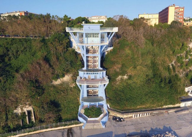 ANCONA – Allestito il cantiere per la manutenzione dell’impianto di risalita, nel progetto degli architetti Roccheggiani e Battistelli è disegnato il futuro della torre sul mare. Corsa contro il tempo per la riapertura entro l’inizio della stagione estiva