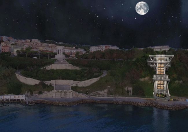 Vetrate fronte mare al posto delle inferriate frontali, bianco e grigio invece del celeste sbiadito, il tutto acceso da una illuminazione architettonica per rendere la torre del Passetto come un faro nella notte. Ecco come sarà il nuovo ascensore di piazza IV Novembre, nel progetto immaginato e elaborato per conto del Comune dagli architetti Marco Battistelli e Sergio Roccheggiani dello studio Brau e dall’ingegnere Andrea Mondini di Acale Srl per la parte strutturale. Venerdì è stato “impacchettato” l’impianto di risalita: l’area è stata transennata e interdetta ai cittadini per permettere l’allestimento del cantiere e le prime opere propedeutiche ai lavori di manutenzione. L’appalto è ancora in fase di gara, il Comune ha selezionato 10 imprese per l’assegnazione con procedura negoziata (leggi l’articolo). Costo di circa 2 milioni di euro, sarà l’opera pubblica più importante dell’anno dal punto di vista economico, che prevede le manutenzioni e la sostituzione delle cabine, oltre alle opere strutturali per l’adeguamento antisismico. Dal punto di vista architettonico, l’ascensore resterà fedele al suo stile brutalista degli anni ’50, ma con un tocco moderno: le vetrate renderanno possibile la vista mare e del panorama di 270 gradi durante l’intero tragitto della cabina verso la spiaggia e saranno tolte anche un parte delle inferriate. A quando la riapertura? Servirà la corsa contro il tempo: tre mesi di lavori, si punta alla riapertura in tempo per l’inizio della stagione estiva di giugno, altrimenti la spiaggia urbana del Passetto sarà di fatto inaccessibile per anziani, disabili e famiglie con bambini. Quello dell’ascensore non è l’unico intervento promesso dal Comune sulla zona del Passetto: in corso c’è la manutenzione della pista di pattinaggio, nei prossimi 3 anni altri 600 mila euro per la riqualificazione del verde della pineta e dell’area dei laghetti della piscina (leggi l’articolo).