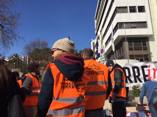 Tra i manifestanti, rappresentanti di gran parte dell’area del “cratere”: Fiastra, Caldarola, Bolognola, Ussita, Belforte del Chienti, Macerata, Pievebovigliana, Fabriano, Camerino, Monte Gallo, Amandola, Sarnano, San Ginesio, Esanatoglia, ma anche cittadini solidali di Jesi e Senigallia.