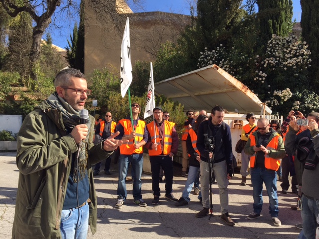 Un momento della manifestazione davanti a Palazzo Raffaello
