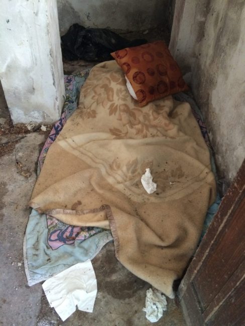 appunto, ospitava i servizi igienici. Assenti water, lavandini, rubinetti, impianti di illuminazione. I frequentatori portano il nome di sporcizia, rifiuti, infiltrazioni d’acqua. Eppure, quest’antro d’inferno urbanistico, è vissuto da uno o più residenti saltuari. Un senzatetto, uno fra i tanti nuovi poveri di Ancona, ha realizzato tra un colonna di cemento, una parete ammuffita e una porta interna (marcia, sbilenca e sempre aperta) la sua pseudo cameretta da letto Due coperte buttate una sopra l’altra, un cuscino. Tutto qui. Intorno cartacce e luridume stratificato.
