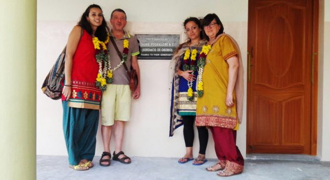 La delegazioni osimana in India, all’orfanotrofio di don Alex con la targa ricordo per la donazione
