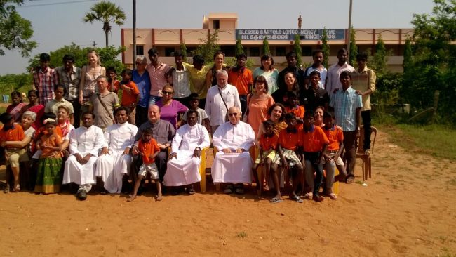 Foto ricordo con gli ospiti all’orfanotrofio costruito nella regione del Tamil Nadu