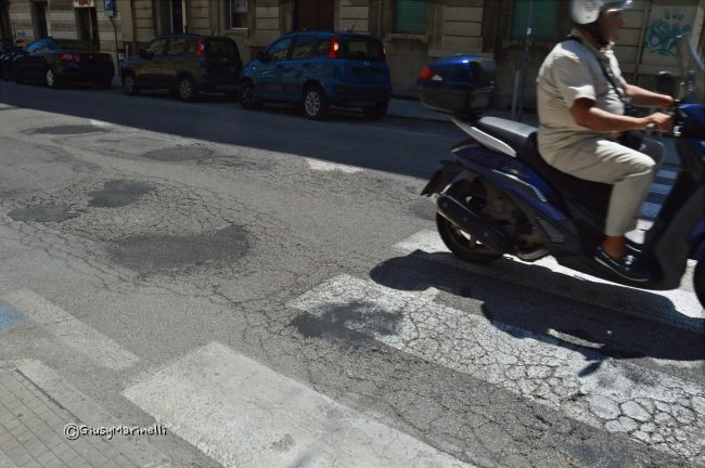 I crateri nell’asfalto di corso Amendola, nelle foto di Giusy Marinelli