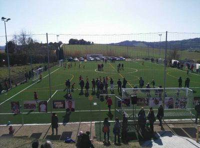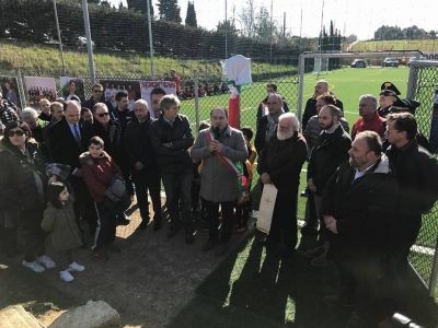 La cerimonia di inaugurazione del campo di calcio a 8, a San Biagio di Osimo
