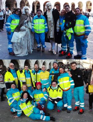 Diciamoci la verità: il Carnevale di Venezia ha il suo fascino anche se lo si guarda da dietro le quinte, attraverso gli occhi degli operatori impegnati nel servizio di assistenza sanitaria. Tra maschere, balli, concerti e coriandoli, quattordici volontari della Misericordia di Osimo, da due giorni sono al lavoro in laguna per garantire un sereno svolgimento dell’appuntamento insieme ai colleghi della confraternita veneta. La squadra di primo soccorso della Misericordia di Venezia, durante la settimana del Carnevale è operativa con orari no stop, giorno e notte, a seconda delle esigenze. I servizi per l’assistenza sanitaria alla folla dai turisti che si riversa nella città galleggiante più bella del mondo sono coordinati dalla centrale operativa del 112 (ex 118). Le richieste di adesione delle diverse squadre a supporto e in arrivo dalla altre città d’Italia, sono invece gestite dall’ufficio nazionale delle Misericordie d’Italia.
