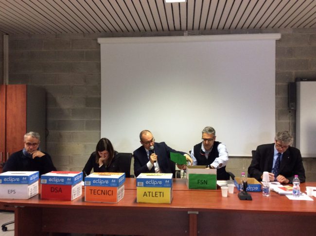 Votazione storica quella di oggi, sabato 4 marzo, al PalaRossini di Ancona. Per la prima volta dalla nascita del Comitato regionale non c’è stata una candidatura unica per la presidenza. Vittoria giocata all’ultimo voto tra il presidente uscente Germano Peschini e quella del delegato del Coni Ancona, Fabio Luna che ha conquistato la presidenza con 29 voti. Osimano, 57 anni, Fabio Luna proviene dalla Federazione delle Bocce, dove è stato presidente regionale e ricoperto incarichi nazionali ed internazionali. Da anni in Giunta regionale del Coni, come vice presidente del primo mandato Sturani, presidente provinciale e delegato di Ancona.