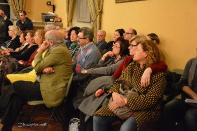 Franca Mangialardo (con il foulard verde) seduta tra il pubblico della Sala Gialla al consiglio sulla sanità del 1 marzo 2017