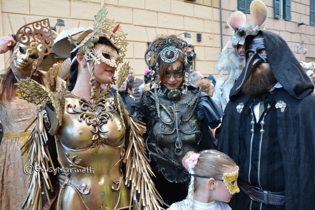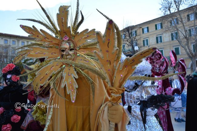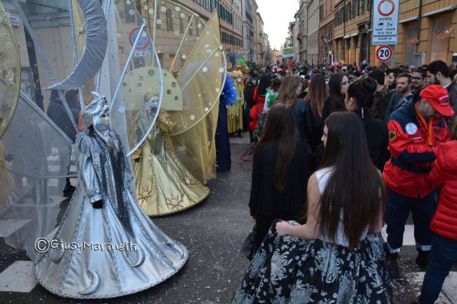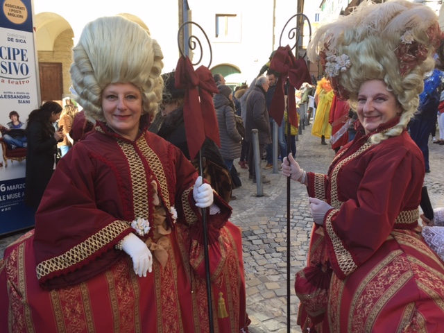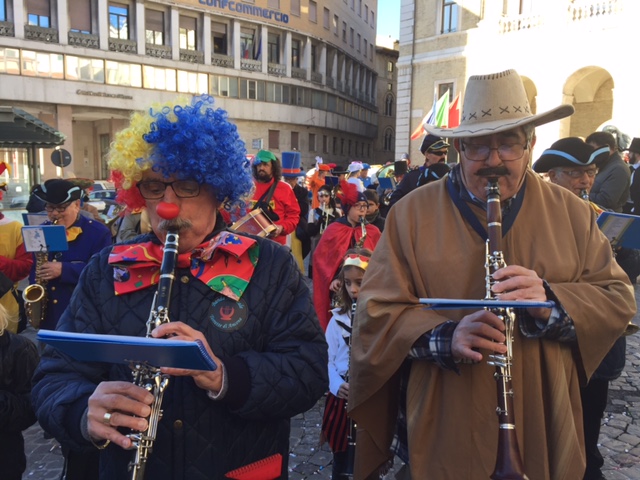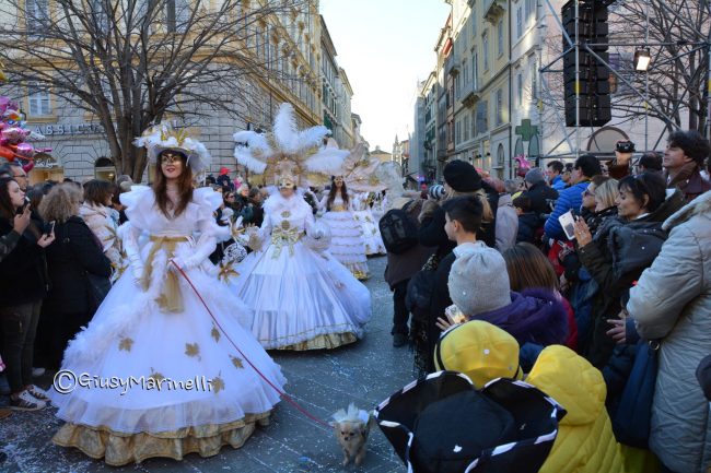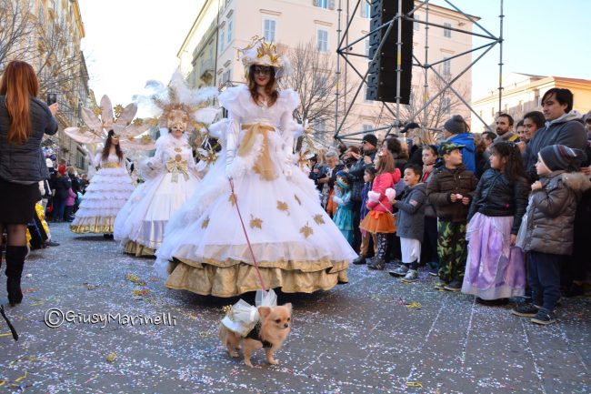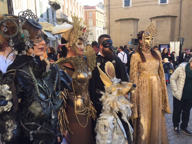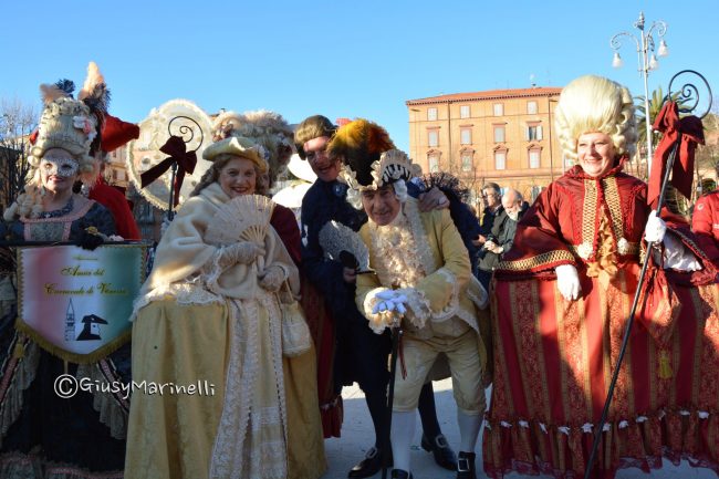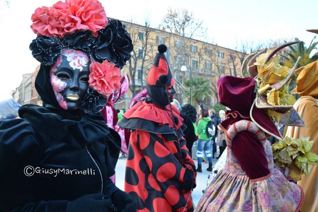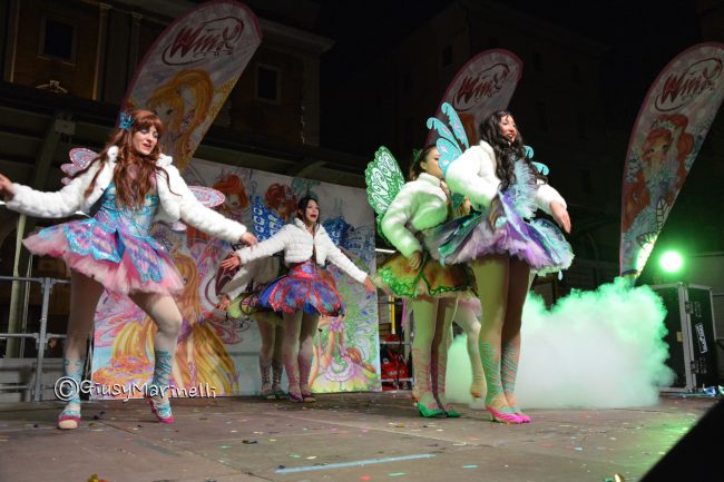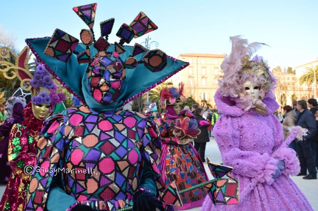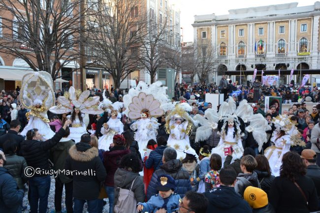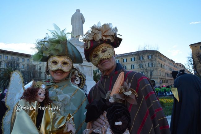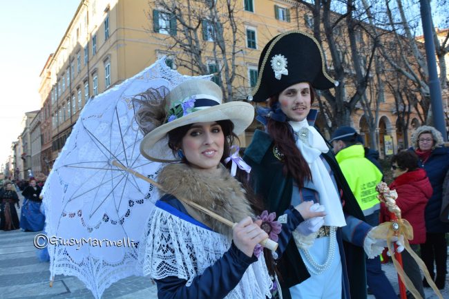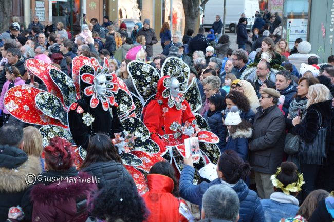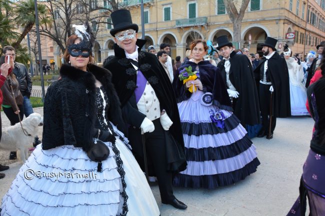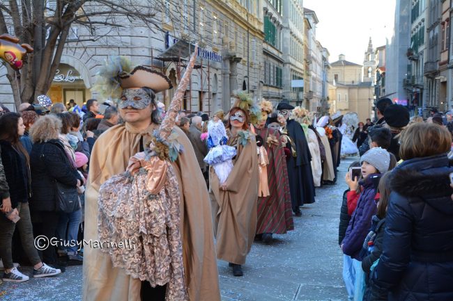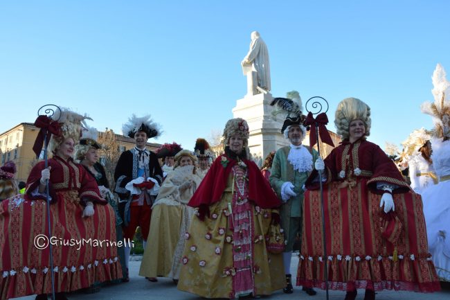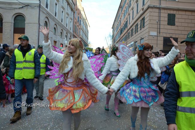 Piume, pizzi, seta, velluto rosso e blu e una pioggia di coriandoli. Esplode il Carnevalò, ad Ancona, con un fiume di maschere che hanno invaso corso Garibaldi, piazza Roma e piazza Cavour fino a raggiungere l’esterno del teatro delle Muse. Nonostante la pioggia che al mattino minacciava la kermesse anconetana giunta al suo 20esimo anno, il sole ha spazzato via ogni rischio ed in centro è stata festa per tutti. Dal palco di piazza Roma la presentazione delle maschere dalla voce di Roberto Cardinali. Tante le novità di quest’anno come un gruppo mascherato da regina Elisabetta, e poi le nuvole, sole e luna e zombie, le dame del Settecento. Ad aprire il corteo le fatine Winx, la novità principale di questa edizione del Carnevale che ha visto sfilare 250 maschere. A tutti una targa di partecipazione.