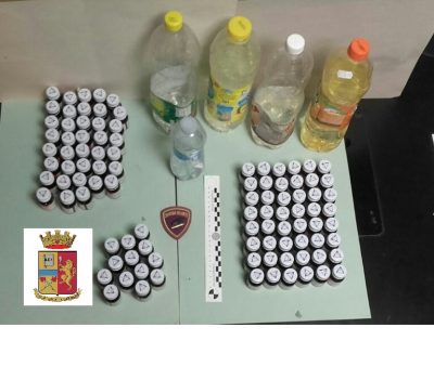 Ampolle di metadone per lo spaccio agli Archi, ad Ancona. In manette due 53enni. Li ha sorpresi la polizia, ieri sera, in via Mamiani. Attorno alle 19, una pattuglia delle volanti, ha visto un uomo e una donna a bordo di una vettura. Ha riconosciuto nella coppia due perone già note alle forze dell’ordine. Attorno all’auto un via vai di gente gestito dalla donna che scendeva e apriva, di volta in volta, il portabagagli. La stessa avvolgeva qualcosa in un fazzoletto prima di consegnarlo. I poliziotti allora sono intervenuti. Gli agenti hanno invitato i due ad aprire il portabagagli dell’auto. All’interno c’erano 101 boccette di vetro, tipo ampolle, da 20 ml ciascuna e contenente metadone. Le boccette avevano tanto di scritta e simbolo disegnato sui tappi di metallo. I due non hanno proferito parola. Addosso lui aveva mille euro in banconote da 10 e 20 euro. E’ stata perquisita l’a casa della coppia dove però una stanza aveva la porta chiusa a chiave. I due inizialmente hanno detto di averla persa ma poi è stata trovata addosso alla donna. La porta è stata aperta e al’interno della stanza c’era un vero e proprio deposito e confezionamento di metadone. Infatti vi erano altre boccette di vetro vuote pronte ad essere confezionate e 5 bottiglie in plastica da 1,5 litri ciascuna contente metadone. Accompagnati in questura i due sono stati arrestati per detenzione di sostanza stupefacente ai fini di spaccio.