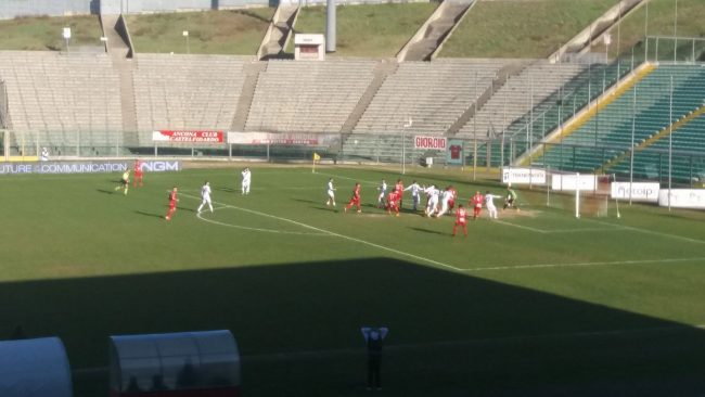 Pronti via e Negro fa la barba al palo. Il brivido scuote l’Ancona che al 12′ passa in vantaggio. Corner da sinistra di Voltan e incornata perentoria di Ricci che insacca sotto la Curva Nord semi deserta. Il Matera replica con Casoli che ci prova di testa sotto misura, Anacoura si distende e salva il risultato. L’Ancona insiste. Al 27′ su azione prolungata in area ospite Zampa raccoglie e da posizione defilata batte di destro in diagonale Tozzo fissando il punteggio sul 2-0. Gli ospiti non ci stanno. Al 3′ infantino penetra in area, ma Anacoura gli chiude lo specchio. Sul capovolgimento ci prova da fuori Momentè, Tozzo si rifugia in angolo. In avvio di ripresa Tozzo sbroglia una mischia pericolosa anticipando di un soffio Daffara. Poi però al primo affondo passa il Matera. Corner da sinistra di Strambelli. Gigli sfugge alla marcatura di Ricci e deposita in rete di testa al 8′.
