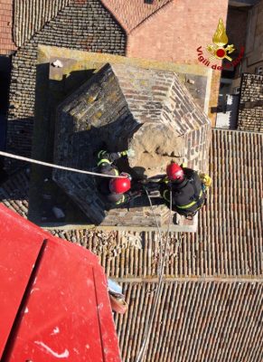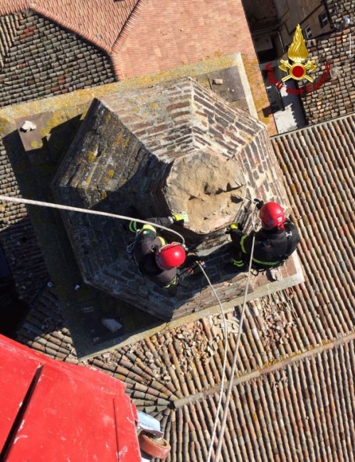 Nella mattinata di oggi i vigili del fuoco sono intervenuti a Santa Maria Nuova per la messa in sicurezza della torre campanaria della Chiesa di Sant’Antonio da Padova.