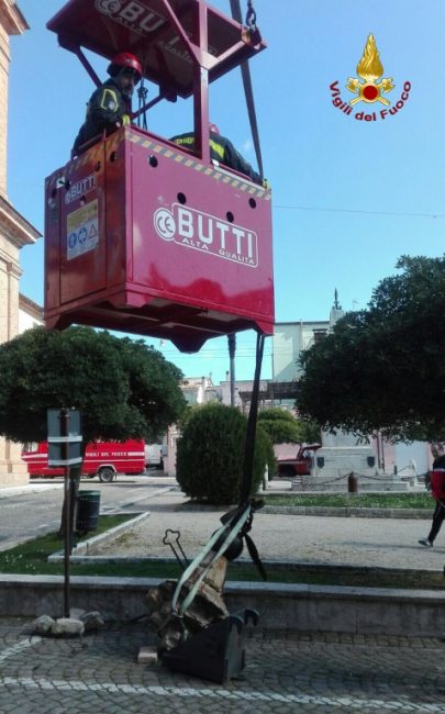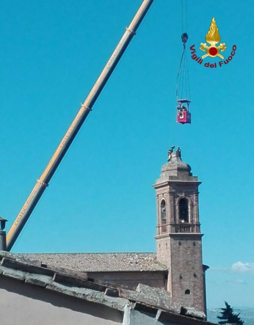 I vigili del fuoco, hanno rimosso ad una altezza di trentacinque metri le parti pericolanti e la croce della torre campanaria che dopo la scossa del 30 di novembre era caduta sul tetto della chiesa. L’intervento effettuato dai vigili del fuoco, è valso al ripristino delle condizioni di sicurezza.