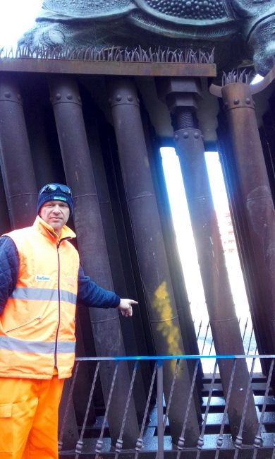 E per questo il Comune ha dato mandato ad Anconambiente di intervenire con l’utilizzo della idropulitrice Ghibli che agisce tramite una miscela di polvere di cocco e polvere di mais con l’acqua, una tecnica poco invasiva, delicata ma comunque capace di ripristinare i punti imbrattati. Stamattina la squadra guidata da Andrea Mazzola, responsabile del servizio, è prima intervenuta in Piazza del Papa, sulla fontana dei Decapitati. E qui c’è stata la prima sorpresa: gran parte di questi graffiti erano già stati ripuliti da sconosciuti. Erano rimaste alcune macchie di colore che gli addetti hanno rimosso sotto il controllo dell’architetto del Comune di Ancona, Patrizia Piattelletti. Su un punto della fontana, in particolare sul bassorilievo del cavallo, è rimasta una piccola macchia di colore blu, che è stata segnalata alla Soprintendenza perché possa intervenire un restauratore.