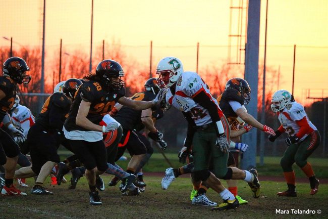 In effetti i meneghini sono sembrati forti e solidi in tutti i reparti, e questo è sicuramente il frutto della panchina lunga che i milanesi si possono permettere, ma a nostro avviso, non irresistibili. Probabilmente la formazione milanese avrà ulteriori spazi per crescere e migliorare gli assetti di gioco e il timing, probabilmente anche a causa del campo non esattamente un gioiello, come ci si aspetterebbe da una formazione così blasonata e che rappresenterà la “crem de la crem” dell’Italia nel prossimo campionato Europeo, con per esempio i pali per le trasformazioni, montati su una porta da calcio (da anni 90) e non a termini di regolamento relativamente all’altezza degli stessi (6 metri). I GLS Dolphins, che sicuramente hanno sofferto troppo in partenza, quasi come fossero frastornati di trovarsi al cospetto di cotanto avversario, se avessero messo sul tabellino ulteriori 10/14 punti, nessuno avrebbe potuto gridare allo scandalo. In ben tre occasioni assolutamente limpide l’offense marchigiano capitanato da Kasdorf si è portato a ridosso della end zone avversaria e la il field goal da tre punti calciato tra i pali e chiamato fuori dagli arbitri, proprio a causa dei pali non regolamentari, nel secondo quarto.