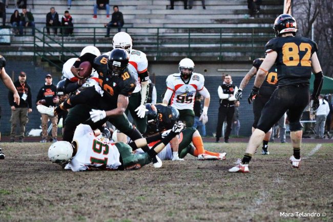 Precisiamo ulteriormente: la differenza tra i dei team resta palpabile in termini tecnici e spesso anche fisici, ma quello che hanno messo in mostra gli adriatici nel secondo tempo, tanto che lo staff tecnico milanese ha rimesso in campo la prima difesa capitanata dal il forte linebacker centrale americano McNeal.