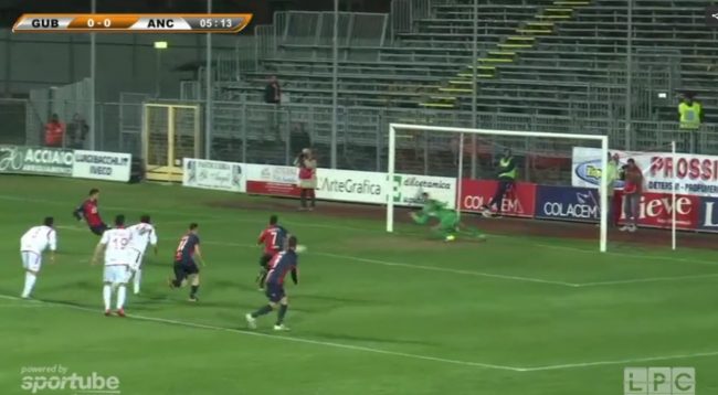 A Gubbio il mister lancia a sorpresa Voltan e premia Anacoura dopo le buone uscite in coppa. Mister Magi conferma il 4-3-1-2 con Casiraghi alle spalle delle punte Ferretti e Ferri Marini. La gara si mette subito in salita per l’Ancona. Casiraghi incrocia le gambe di Daffara al momento di entrare in area sul lato corto. Per l’arbitro è rigore. Ma resta il dubbio che il contatto tra i due avvenga fuori dai 16 metri. Dal dischetto va Ferri Marini che spiazza Anacoura e porta in vantaggio il Gubbio al 5′. I dorici sono storditi e i locali approfittano. Azione corale degli umbri, Casiraghi raccoglie sulla trequarti e sembra voler calciare in porta. La palla sbatte sul tacco di Ferri Marini e si impenna nel cuore dell’area biancorossa. L’attaccante resta freddo e al 7′ infila per la seconda volta Anacoura. Il Gubbio insiste. Al 14′ Ferretti in percussione entra in area e taglia un traversone velenoso. Cacioli sbroglia in corner. Al 17′ l’Ancona rialza la testa. Nicolao crossa da sinistra, la palla spiove sul secondo palo. Agyei calcia al volo da posizione defilata. Il tiro sibila sull’erba e si infila in diagonale. I dorici ci credono. Al 19′ Frediani ci prova da fuori e Volpe si rifugia in angolo. Arriva al 44′ il secondo gol dell’Ancona.