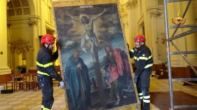 I vigili del fuoco, oggi sono intervenuti a Monte San Vito presso la Chiesa Collegiata per recuperare le opere d’arte e sacre posizionate all’interno della chiesa inagibile dalla scossa dell’agosto scorso. La movimentazione delle opere è stata necessaria per la messa in sicurezza della chiesa.