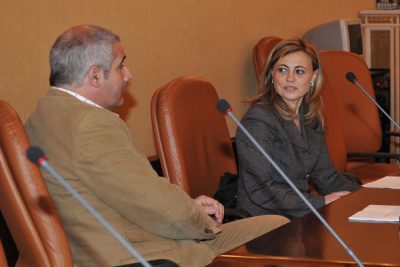 La consigliera Eliana Flamini (Pd) seduta accanto al collega di gruppo Matteo Canapa