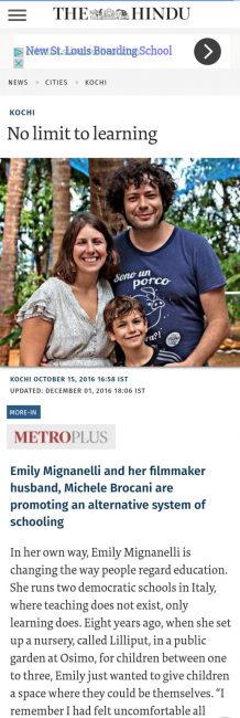 Anche The Hindu, quotidiano indiano ha parlato della coppia osimana che sta girando il mondo alla ricerca di nuove esperienze educative