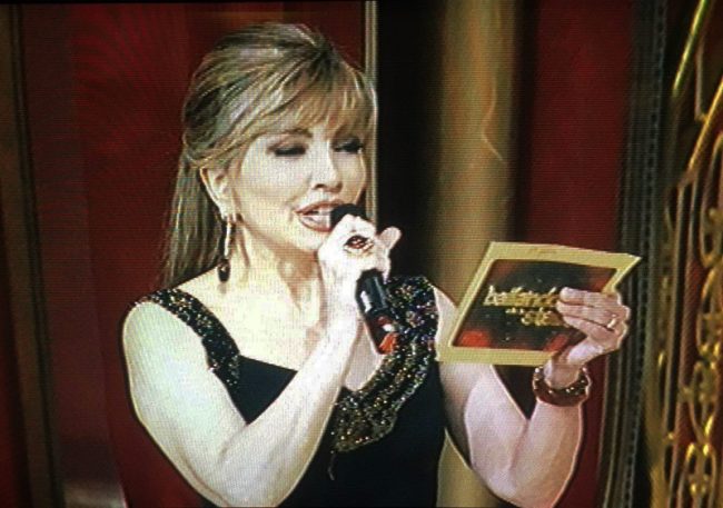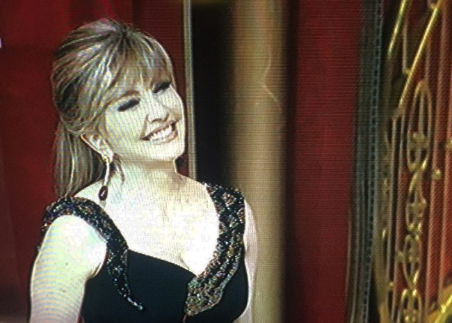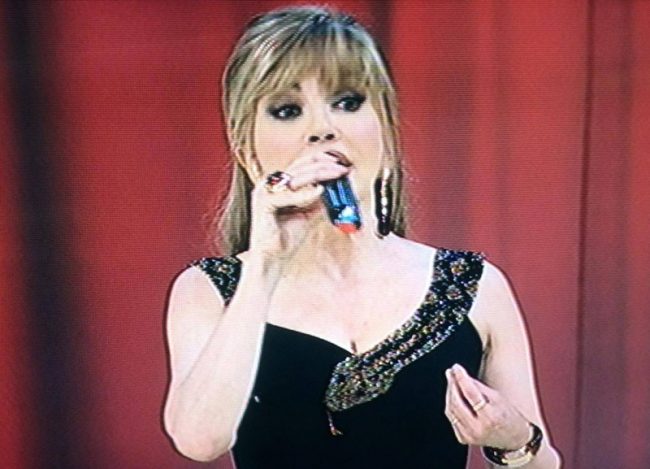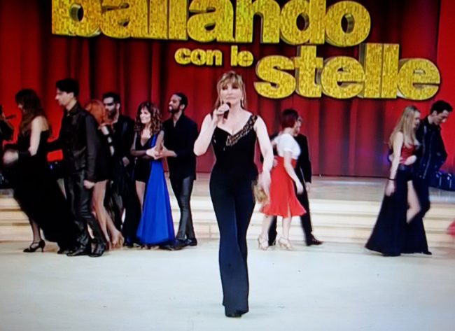 A sorpresa, Milly Carlucci stasera ha indossato il secondo abito disegnato dalla 19enne osimana Alice Mazzantini da un’idea dello stilista Scirè, quello con il ricamo del serpente tempestato di cristalli