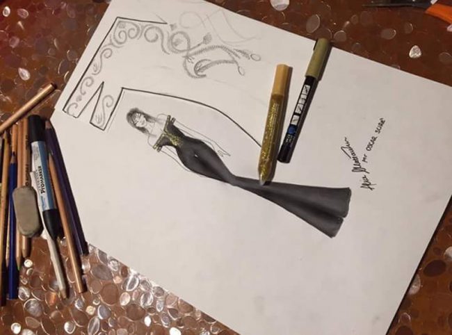 Il bozzetto dell’abito disegnato da Alice Mazzantini per Milly Carlucci