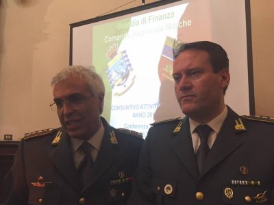 BILANCIO REGIONALE. Lotta all’evasione fiscale, tutela della spesa pubblica, sicurezza e ordine pubblico anche nelle aree terremotate dell’Ascolano e del Maceratese, traffici illeciti, anticorruzione e antiriciclaggio. Questa l’attività che ha visto impegnata la guardia di finanza in tutte le Marche. A presentare il bilancio, il comandate regionale Gianfranco Carozza che ha sottolineato come, dal 1 gennaio, il corpo ha anche l’esercizio delle funzioni relative alla sicurezza del mare. “Siamo l’unica forza di polizia”, ha ribadito. Nella lotta alle frodi fiscali sono stati scoperti 346 evasori totali con un sequestro di 20milioni di euro in beni patrimoniali e finanziari. Nel gioco illegale sono stati 170 gli interventi con 4 denunce. Per il contrasto alle truffe su fondi pubblici e illegalità nella pubblica amministrazione sono stati scoperti 5 milioni di euro di contributi percepiti senza titolo. Segnalati alla Corte dei Conti 73 milioni di danni erariali. L’attività si è concentrata anche a tutela della spesa sanitaria con la denuncia di 9 soggetti per l’esenzione del ticket sanitario di cui non avevano diritto. Sul contrasto ai traffici illeciti si è arrivati a 520 chilogrammi di droga e 41 persone arrestate. Nel settore agroalimentare sequestrate 6 tonnellate di prodotti scaduti.
