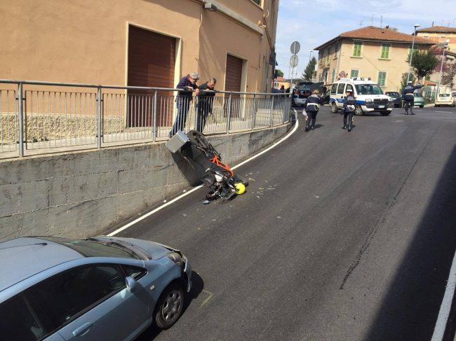 Auto si schianta contro una moto e la fa finire in verticale, sul muretto. Incidente in via Lotto, attorno alle 10, ad Ancona. Soccorso dall’ambulanza un centauro di 58 anni che è finito in pronto soccorso a Torrette. La vettura, una Honda Jazz, guidata da una 81enne, ha imboccato la salita ed è finita contro una Ktm 1100 adventure che scendeva in direzione contraria. Ad avere la peggio è stato il motociclista, scaraventato sul muretto. La moto è finita in verticale. Sul posto la Croce gialla e i vigili urbani. L’ambulanza ha portato l’uomo al pronto soccorso. Per lui solo alcune escoriazioni.