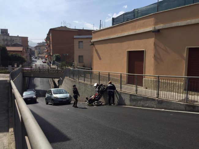 La moto finita contro il muro del sottopasso di via Lotto