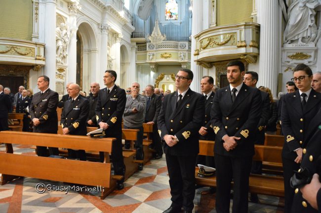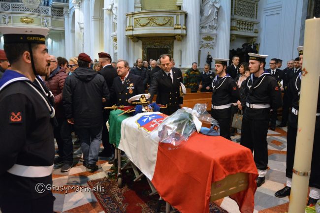 Il porto si ferma per salutare il comandate Stefano Achille. Picchetto d’onore oggi, ad Ancona, al funerale del militare che per anni è stato a capo della sala operativa della Capitaneria di porto. Piena la chiesa del Sacramento dove alle 11 si sono riuniti tutti quelli che hanno voluto bene all’uomo del porto, stroncato da una malattia a 63 anni (leggi l’articolo).  C’erano il comandate della Capitaneria, l’ammiraglio Francesco Saverio Ferrara, quello dei piloti del porto Selva e comandate del distaccamento vigili fuoco del porto Fernando Pignatiello. E ancora tanti marinai, guardia costiera, piloti del porto, poi paracadutisti delle rispettive associazioni sia in servizio che in congedo. La messa è stata celebrata da don Dino Cecconi.