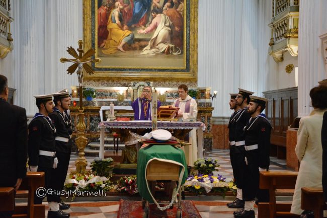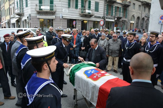 ANCONA - Piena la chiesa del Sacramento dove alle 11 si sono riuniti tutti quelli che hanno voluto bene all'uomo del porto, per anni a capo della sala operativa della Capitaneria, stroncato da una malattia a 63 anni